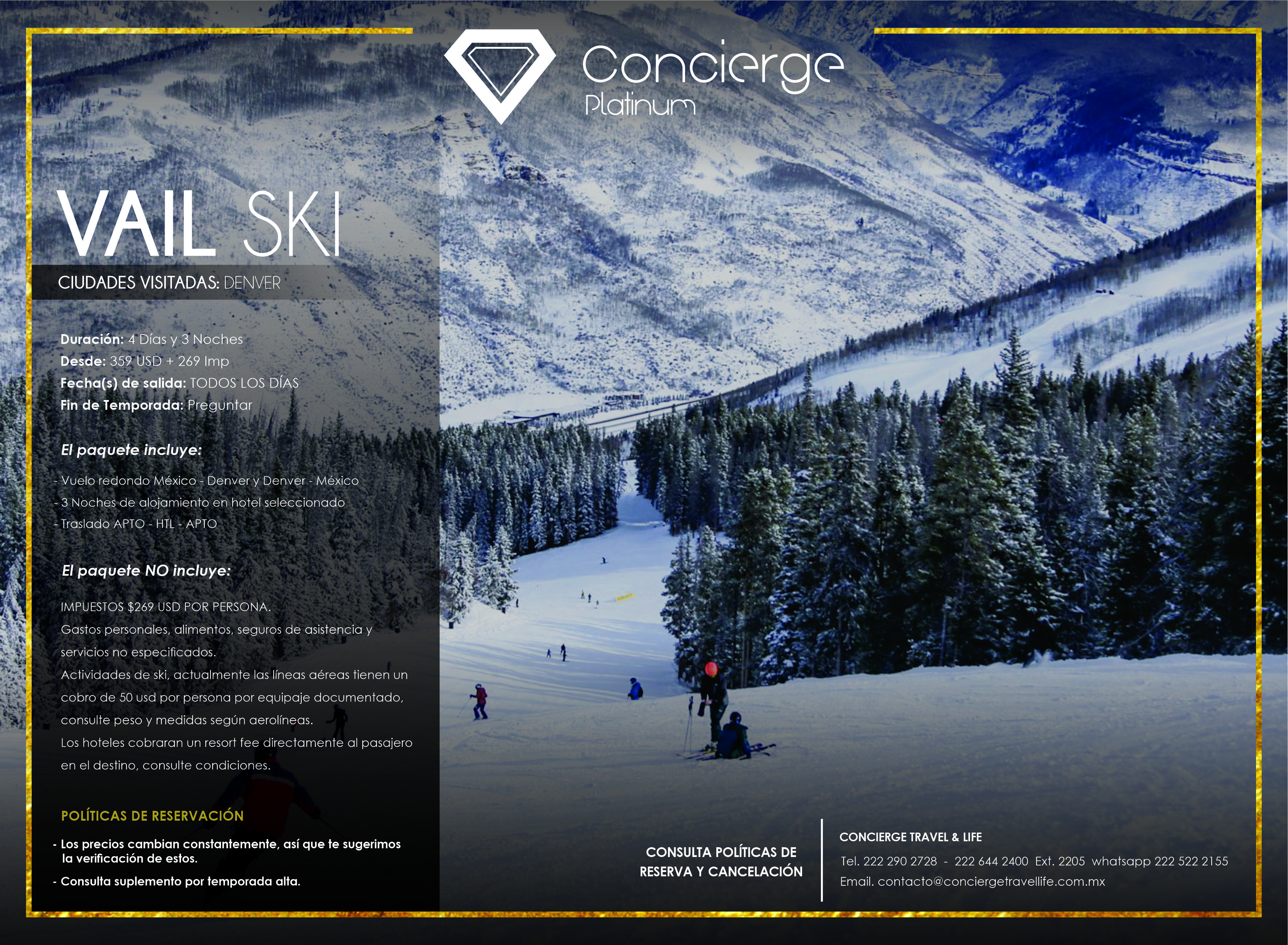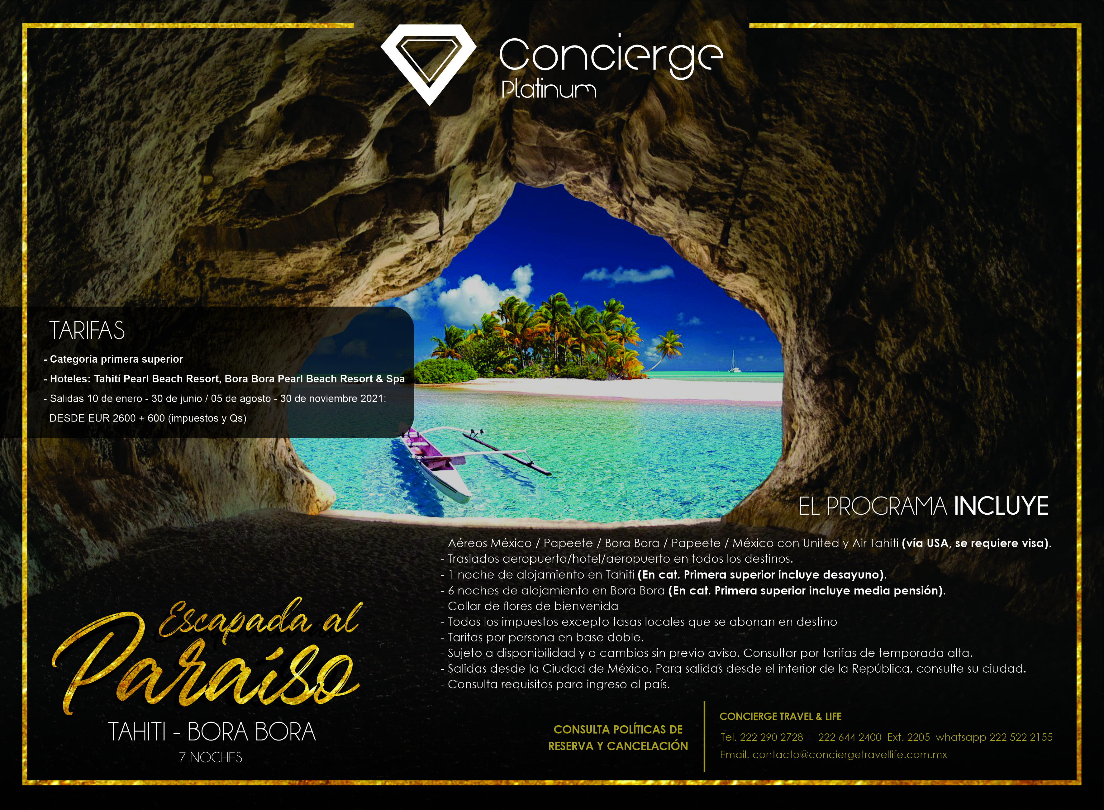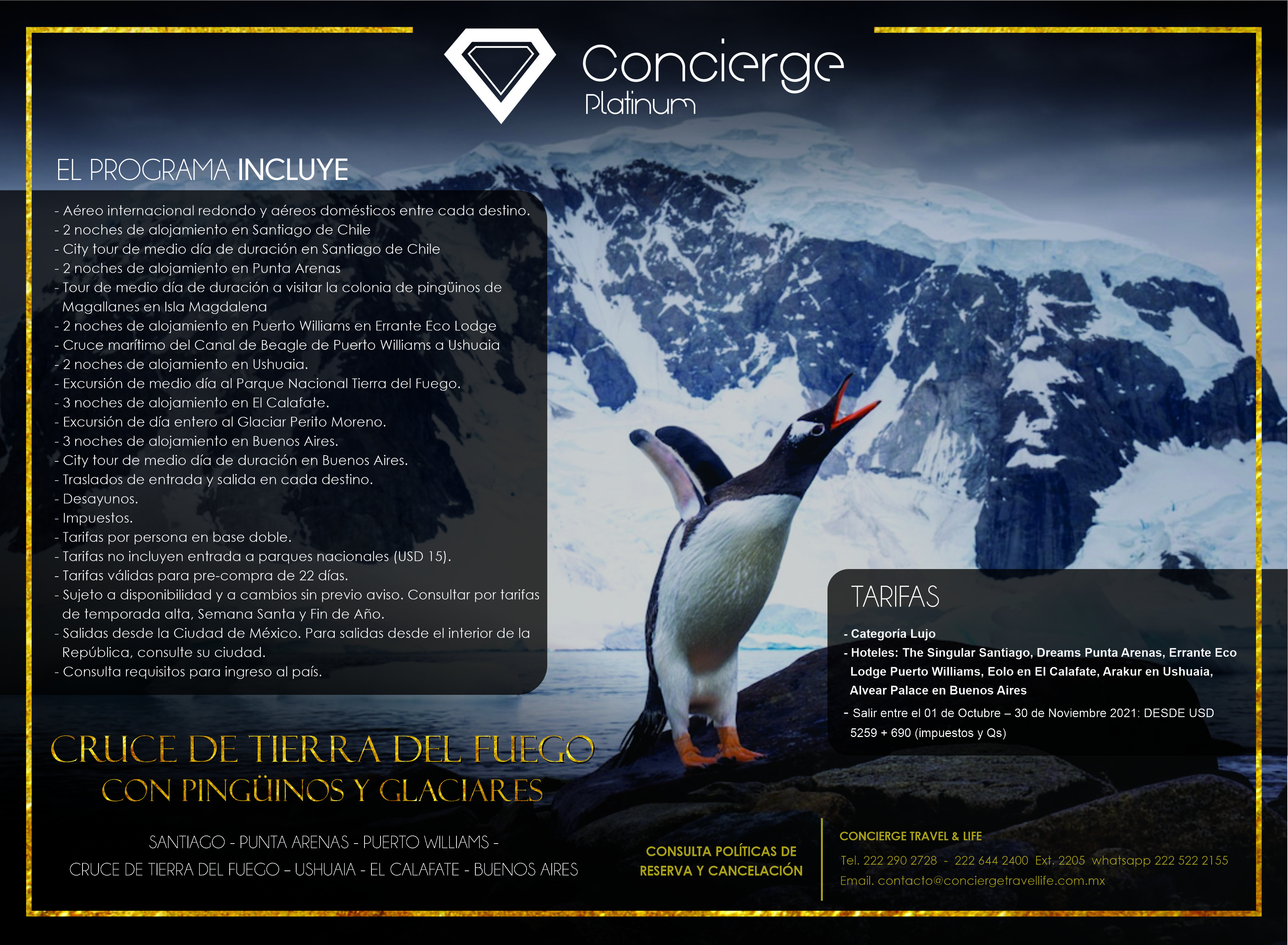 La oferta de servicios Concierge Platinum hace referencia a viajes totalmente personalizados en un ambiente sofisticado para aquellas personas exigentes, dedicado a una atención selecta de visitas a sitios nacionales e internacionales de calidad y elegancia inigualable, solicita tu viaje con tu agente concierge.